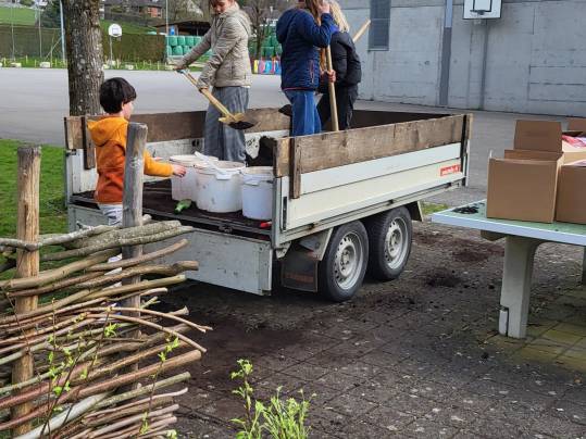Mit vollem Einsatz und viel Spass machten sich unsere Schülerinnen und Schüler daran, den Schulgarten aus dem Winterschlaf zu wecken. Unter der fachkundigen Anleitung unserer Lehrpersonen, Herr Pauli und der wertvollen Unterstützung von freiwilligen Helfern wurden Sträucher und Beeren gesetzt, Kartoffeln vorbereitet und Beete wieder in Form gebracht.