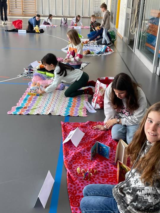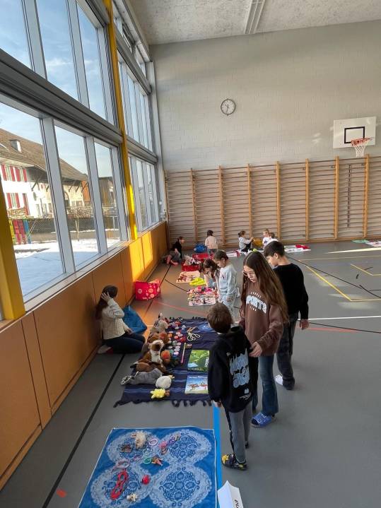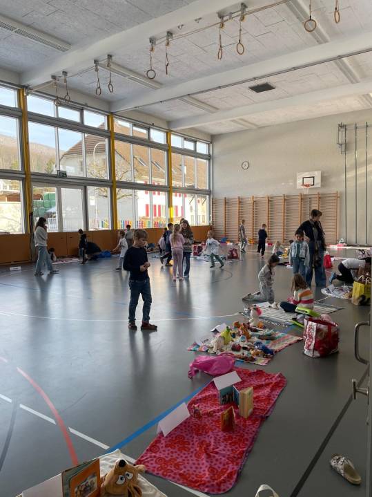 In einer Stunde verwandelte sich die Turnhalle Rickenbach in einen lebendigen Tauschmarkt. Die Kinder brachten Spielsachen mit und tauschten sie fleissig untereinander. Dabei wurde verhandelt, gelacht und Neues entdeckt. Die Freude und der Spass waren in der ganzen Halle spürbar.